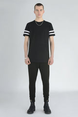 • Contrast stripe crew neck jersey tee in soft single jersey with herringbone pattern.