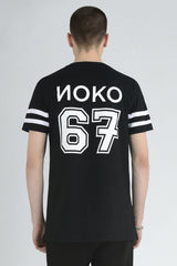 • Иоко embroidery on chest and ик embroidery on hem with vinyl print on reverse.