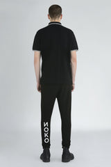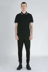 - Our best selling polo shirt only in black. Classic style slim fit, not a horse in sight., Contrast tipping on the collar and sleeves. 2 button placket. Side vents for comfort, knitted collar and cuffs for strength and durability. Subtle black on black иоко embroidery on chest, ик embroidery on hem.