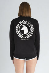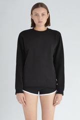 • Our crew neck sweat developed over time and washed multiple times to ensure the colour holds. You want a black sweat this is it, seriously black and remains black. This feminine fit is perfect for everyday use. Collar, cuffs and hem in 1x1 rib with Elastane for that little bit of stretch.  The shoulders, armholes and bottom hemline are top stitched for durability and for added comfort the inside is of brushed fleece. All of our sweats have our subtle brand embroidery on chest and on hem.