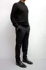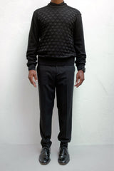 - Teflon covers garment fibres in an invisible protective film which means water and dirt form balls that can easily be removed, this sweat is highly hydrophobic so rain just rolls off. Subtle geometric knitted pattern.