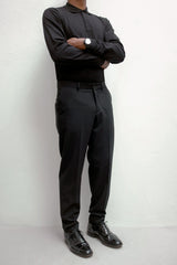 - Slim fit trousers, dress them up, dress them down, perfect for day to evening, made by our ateliers in Italy. Two pockets, ankle length.